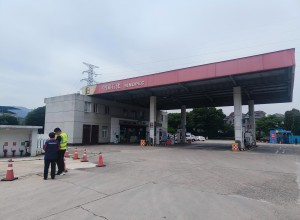 中国石化销售有限公司浙江常山溪口加油站位于浙江省衢州市常山县青石镇水南村中铺85号,加油站储罐区设有4个埋地储罐:2只30m3的汽油罐、2只30m3的柴油罐,加油站在用油罐总容量为120m3,折算油罐总容积为90m3(柴油罐容折半计入),该加油站规模等级属于三级加油站。